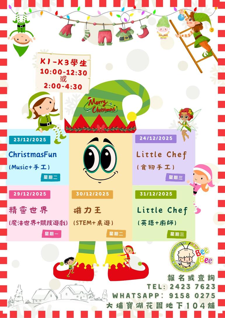23, 24, 29, 30, 31/12/2025 合共五天 (自選日數, 最少報名2天)
